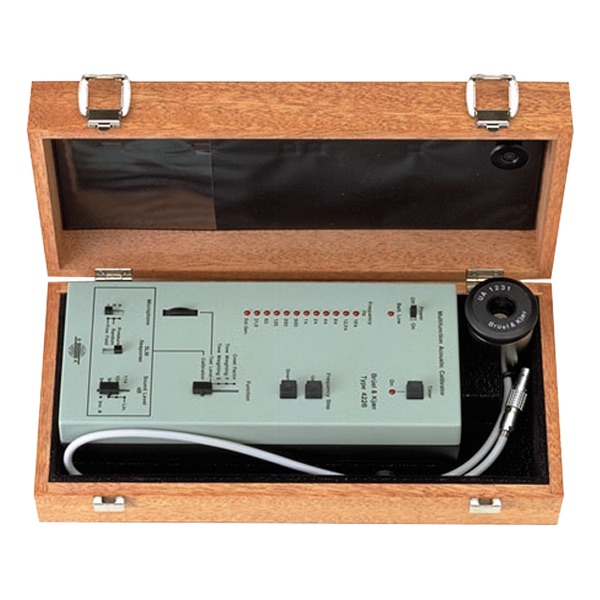 Il s’agit de l’instrument multifonctionnel Bruel&Kjaer qui permet la vérification et l’étalonnage des sonomètres B&K. Le calibrateur fournit un signal acoustique de 94, 104 et 114 dB à des fréquences comprises entre 31,5Hz et 16kHz, ce qui permet de vérifier l’étalonnage des sonomètres.